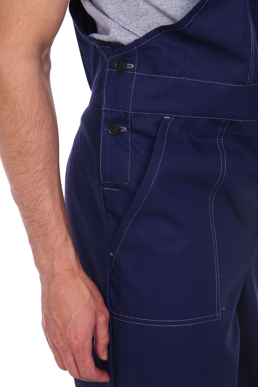 ➠ Полукомбинезон с застежкой гульфика на тесьму «молния» и в правом боковом шве на пуговицы. Накладные карманы с наклонным входом. В области коленей усилительные накладки. На груди накладной карман с клапаном. По низу брюк СОП 50 мм.
